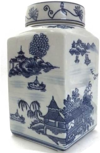 Old Chinese Tea Caddy : Tea tea canisters jar storage tea cups blue and white tea room tea set blue china transferware.